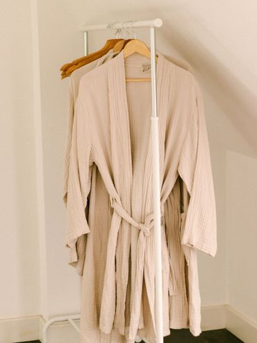 We verstrekken retreatgasten zachte Kayori-badjassen en hamamdoeken van biologisch katoen, zodat iedereen na een sessie heerlijk kan landen.