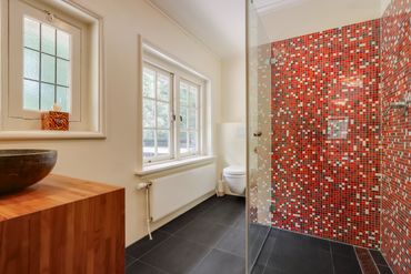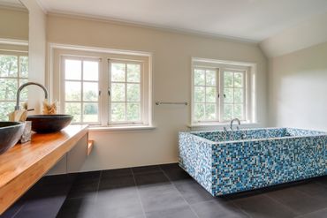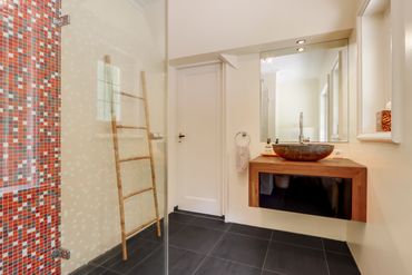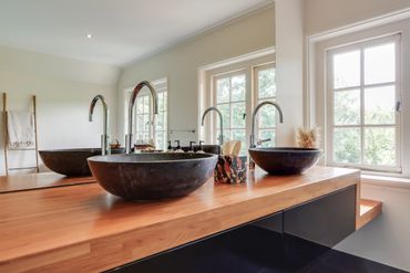 De 2 badkamers worden gedeeld, maar zijn ruim, stijlvol en met veel aandacht ingericht voor een ontspannen verblijf.